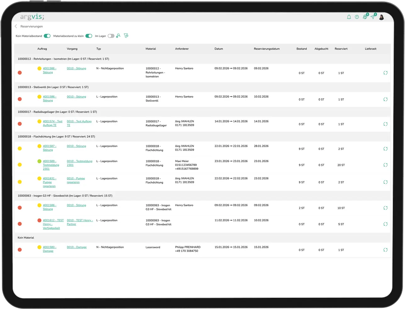 - Techniker und Planer können benötigte Materialien frühzeitig reservieren.